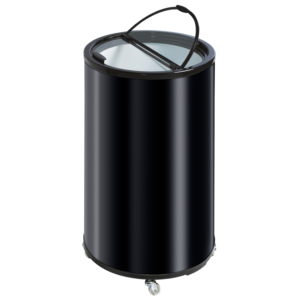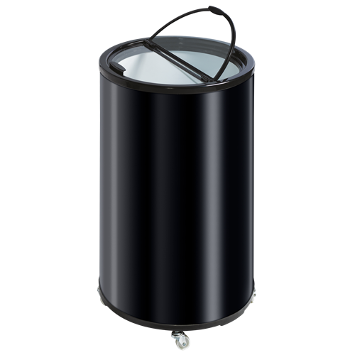 Kylaren är utrustad med 4 hjul, vilket gör den lätt att flytta runt, även när den är fylld med drycker.