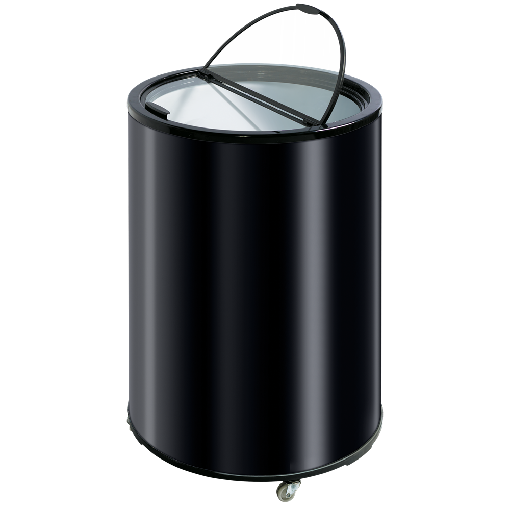 Kylaren är utrustad med 4 hjul, vilket gör den lätt att flytta runt, även när den är fylld med drycker.