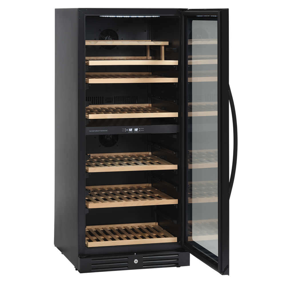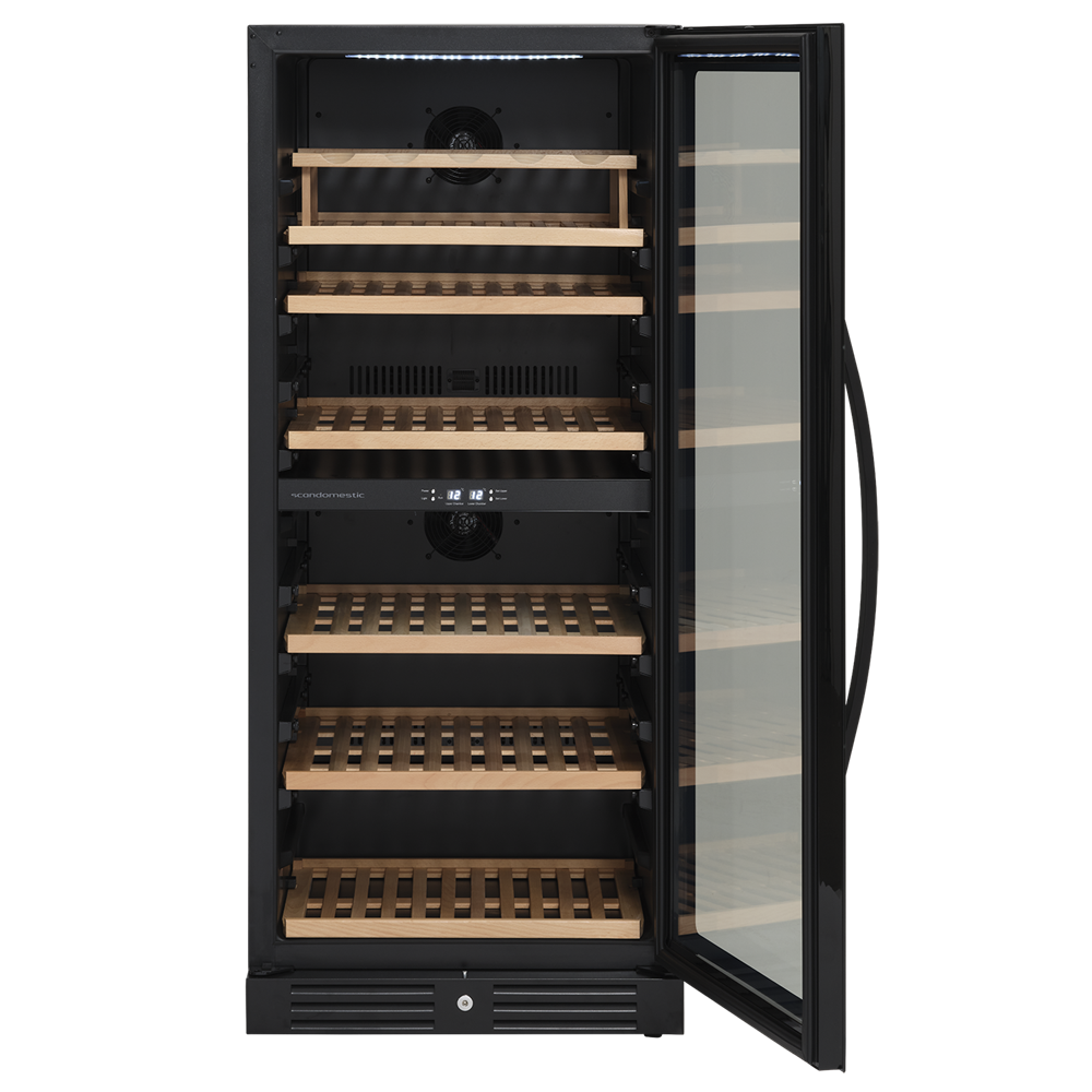 SV 104 B har två kylzoner som ser till att du alltid kan ha tempererat rödvin i den ena zonen och kylt vitt vin i den andra zonen. Det går snabbt och enkelt att ställa in individuella temperaturer för de två temperaturzonerna eftersom varje zon har en enkel kontrollpanel. Du kan till exempel ställa in den ena zonen på 10 grader och den andra zonen på 17 grader. De två zonerna är oberoende av varandra.