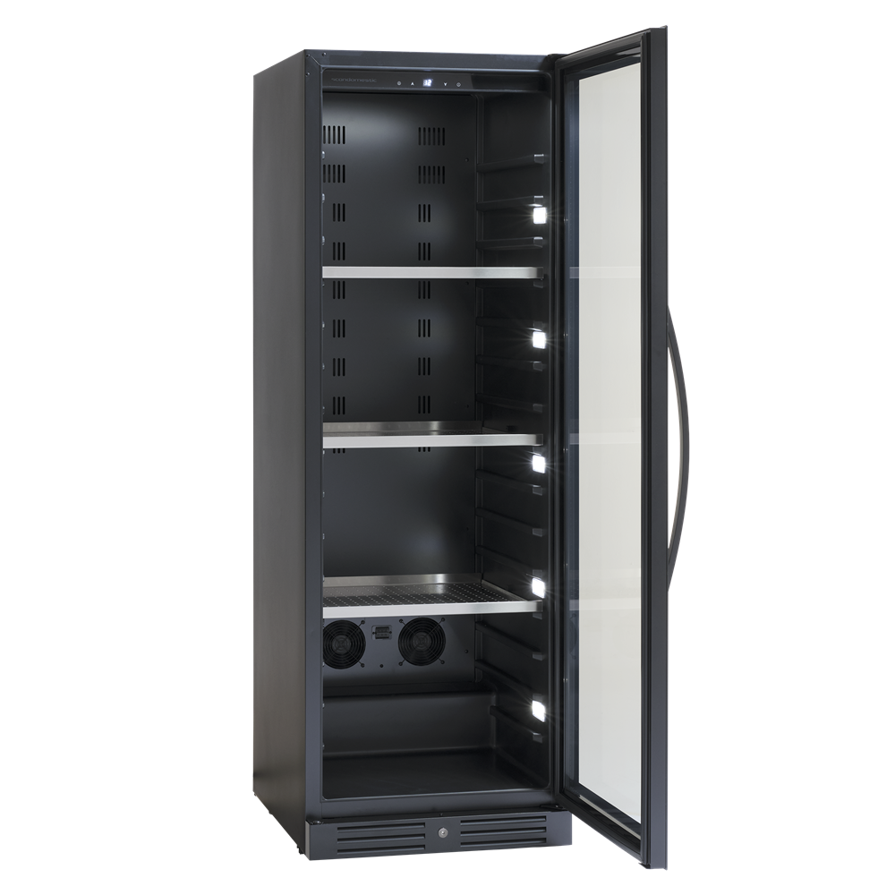 Skåpet har ett intelligent luftcirkulationssystem som säkerställer perfekt ventilerad, vibrationsdämpande kylning i hela skåpet. SV 138 B är elektroniskt styrd och har en digital kontrollpanel, vilket gör det enkelt att se och justera temperaturen i skåpet
