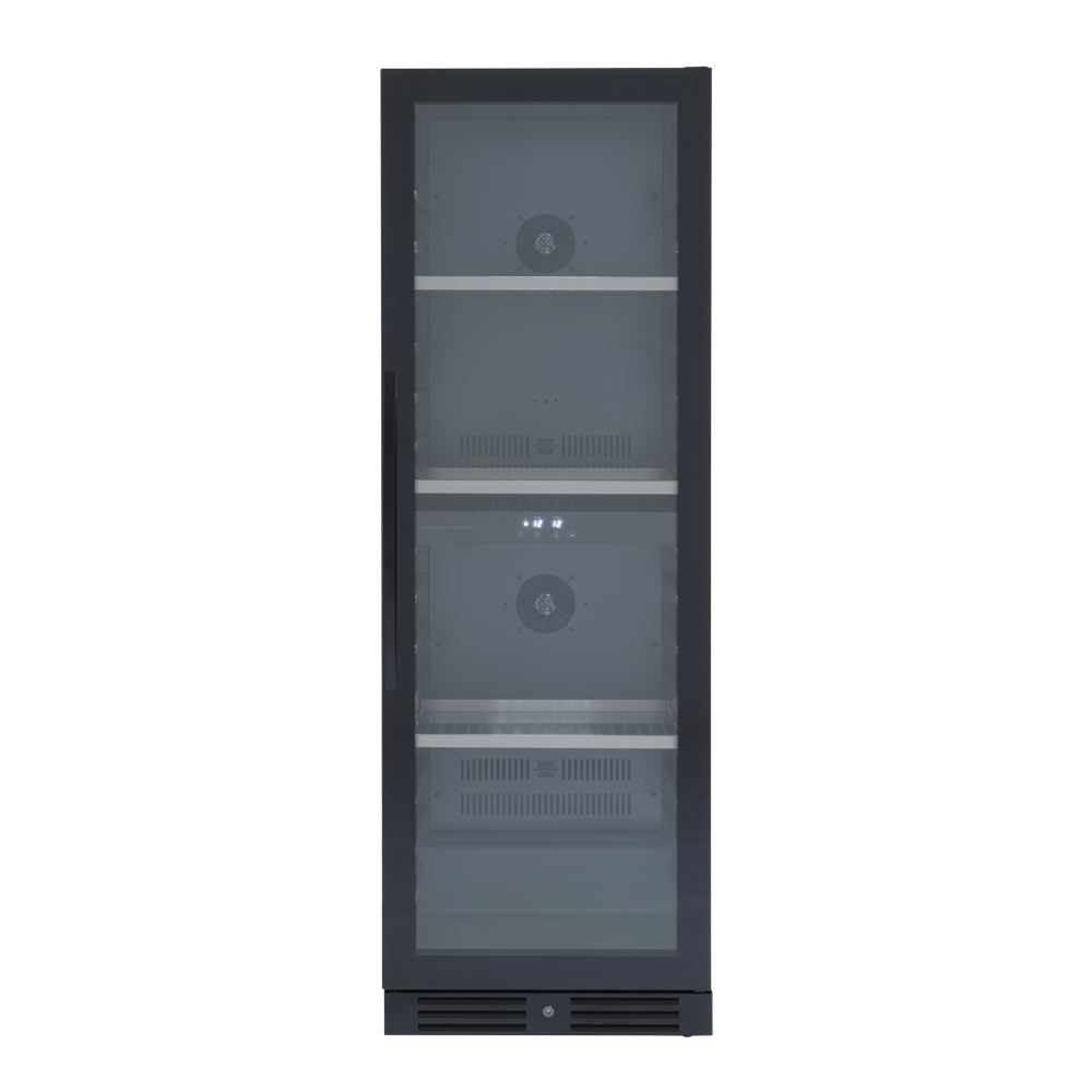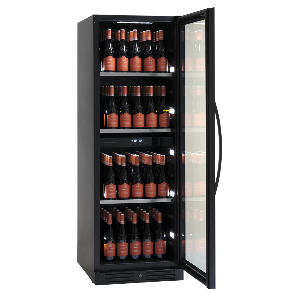 Designen är tidlös och med en intuitiv touchdisplay som tillsammans med den inre belysningen ger skåpet ett exklusivt utseende. Höger gångjärnsdörr med möjlighet att vända dörren, så det är alltid flexibelt att placera vinskåpet i rummet.