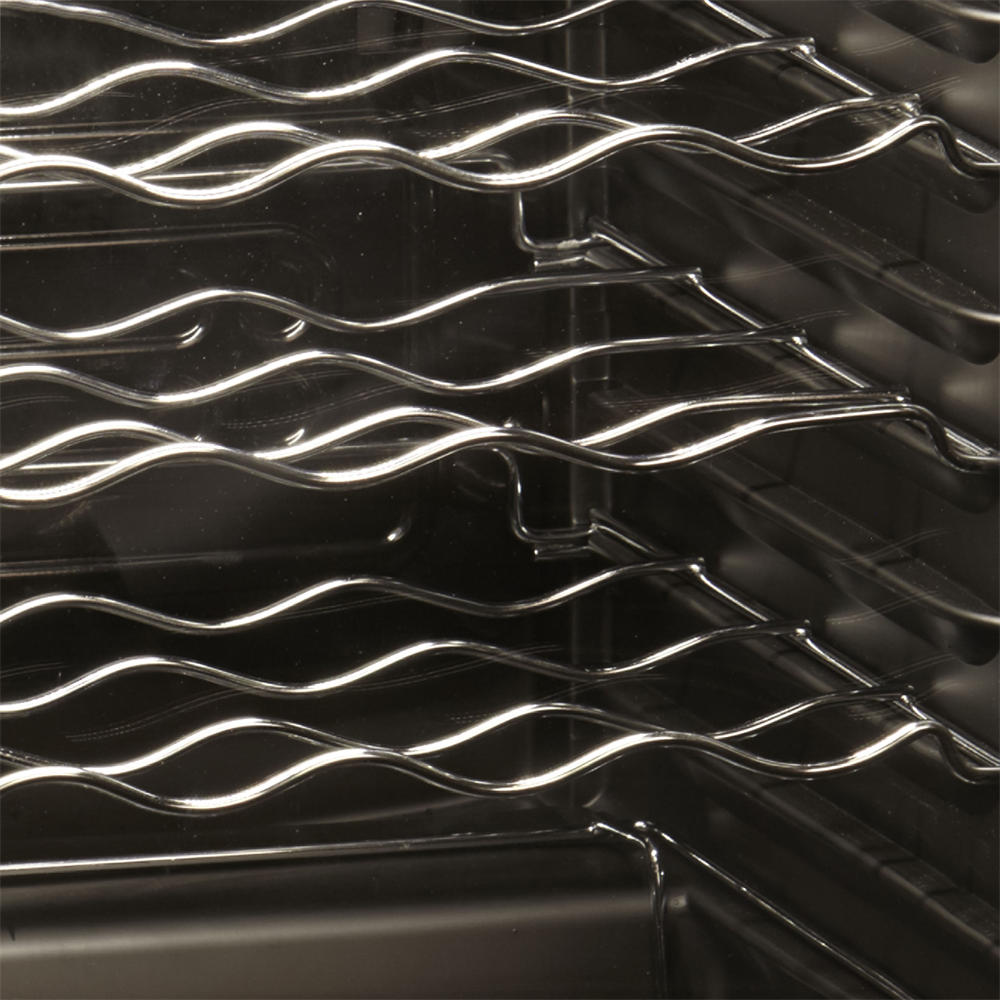 Fläktassisterad kylning|Svart insida och utsida|Tonad glasdörr skyddar vin|Ställbara hyllor|Invändig LED-lampa|Välvd vändbar tonad glasdörr|Glasdörr med gångjärn|Ställbara fötter|Lås