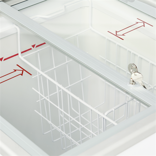 Plana skjutbara glaslock med lås|Utmärkta möjligheter för märkesvisning|Digital termometer|Styrhjul med broms|2 trådkorgar, vita|Klimatklass 5 för hög prestanda i varma miljöer