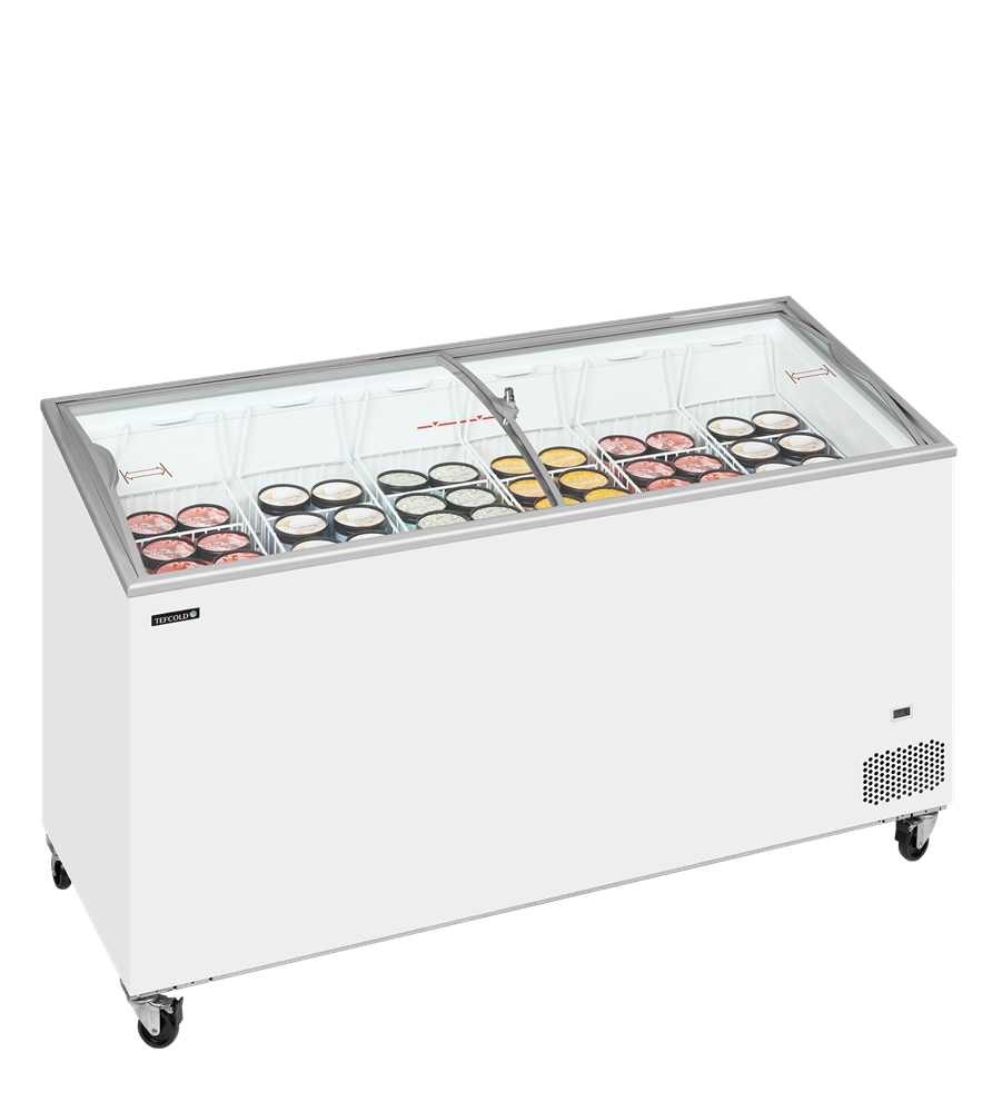 IC-SCEB-standardserien med glassfrysar innehåller stabila och välbyggda enheter till ett konkurrenskraftigt pris. De är ett utmärkt alternativ för t.ex. nystartade företag och säsongsförsäljning. De är försedda med böjda skjutlock av glas så att produkterna syns och en hel uppsättning korgar som kan fyllas med god kulglass och pinnglass. Enheten kan enkelt flyttas tack vare tåliga svänghjul för tung drift.