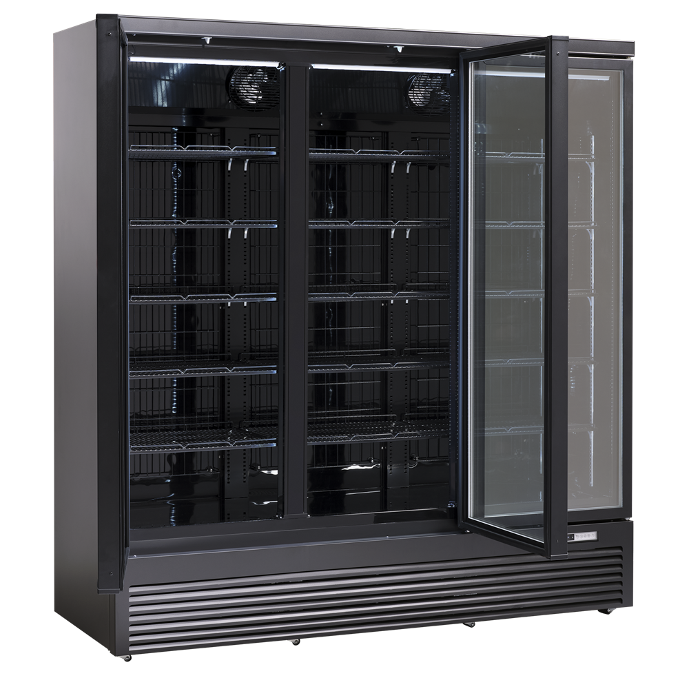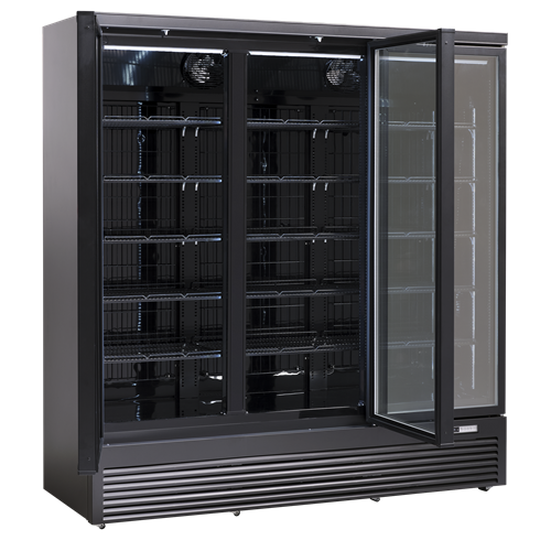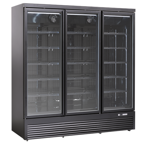 DF1563BD är en stor 3-dörrars displayfrys med hela 1090 nettoliter kylförvaring.