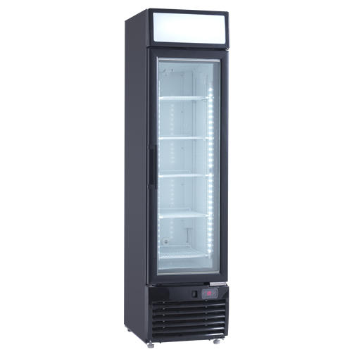 DF217BC är en stor 1-dörrars displayfrys, med 142 nettoliter frysutrymme.