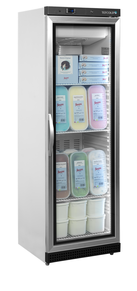 UF-VG-serien med displayfrysar är den ventilerade versionen av våra vita frysar med glasdörr. Den finns i olika storlekar och erbjuder utmärkt flexibilitet med justerbara hyllor. Det effektiva ventilerade kylsystemet säkerställer en jämn temperatur i hela skåpet. Temperaturen kan ställas in med den lättanvända digitala termostatdisplayen. Avfrostning sker automatiskt.