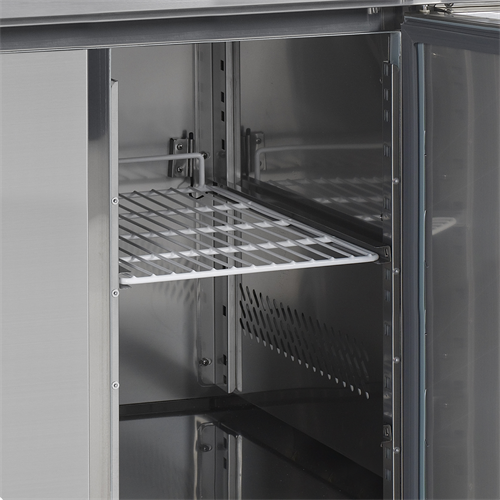 En mycket prisvärd serie|Frysenhet|Rostfritt stål|Ventilerad kylning|Automatisk avfrostning|Självstängande dörrar|Avtagbar bordsskiva med stänkskydd baktill|Ställbara ben