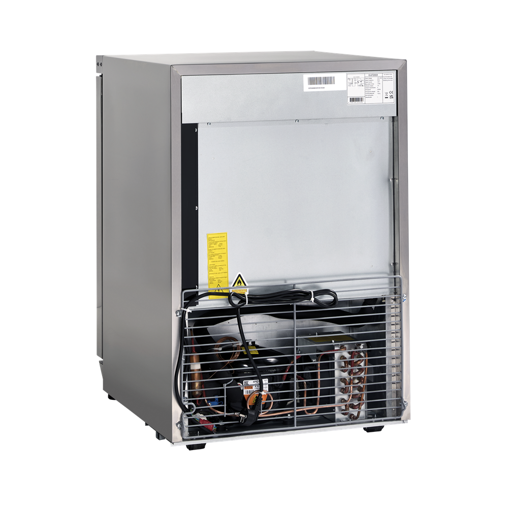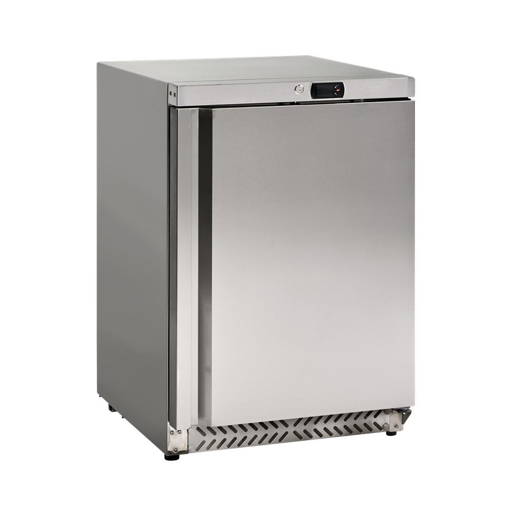 GUF200X är en 1-dörrars förvaringsfrys med skåp i rostfritt stål och 73 liters frysfack.