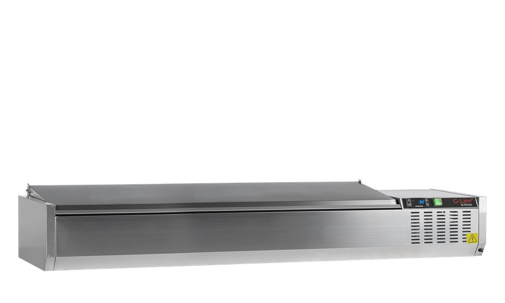 GVC-S/S-serien med vitrinkylar är ett utmärkt komplement till gastro-diskar så att du har allt du behöver för matlagningen inom räckhåll. Den klarar GN1/4- och GN1/6-kantiner (medföljer ej). Kylen är tillverkad i rostfritt stål SS201 med ett stållock som skyddar maten. Passar perfekt för pizzerior, snabbmatsrestauranger och smörgåsbutiker.