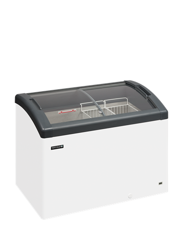 Focus-serien av glassfrysar finns i flera storlekar för att passa dina behov. Den utmärker sig med sin eleganta design, energieffektivitet och hållbarhet. De ramlösa, böjda skjutlocken och den inbyggda LED-belysningen ger en utmärkt presentation. Hjul ingår som standard, vilket gör den lätt att flytta.