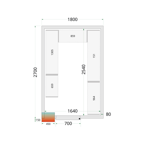 TFW-CR 180x270x212 NF Kylrumspaneler med 80 mm isolering – utan golv