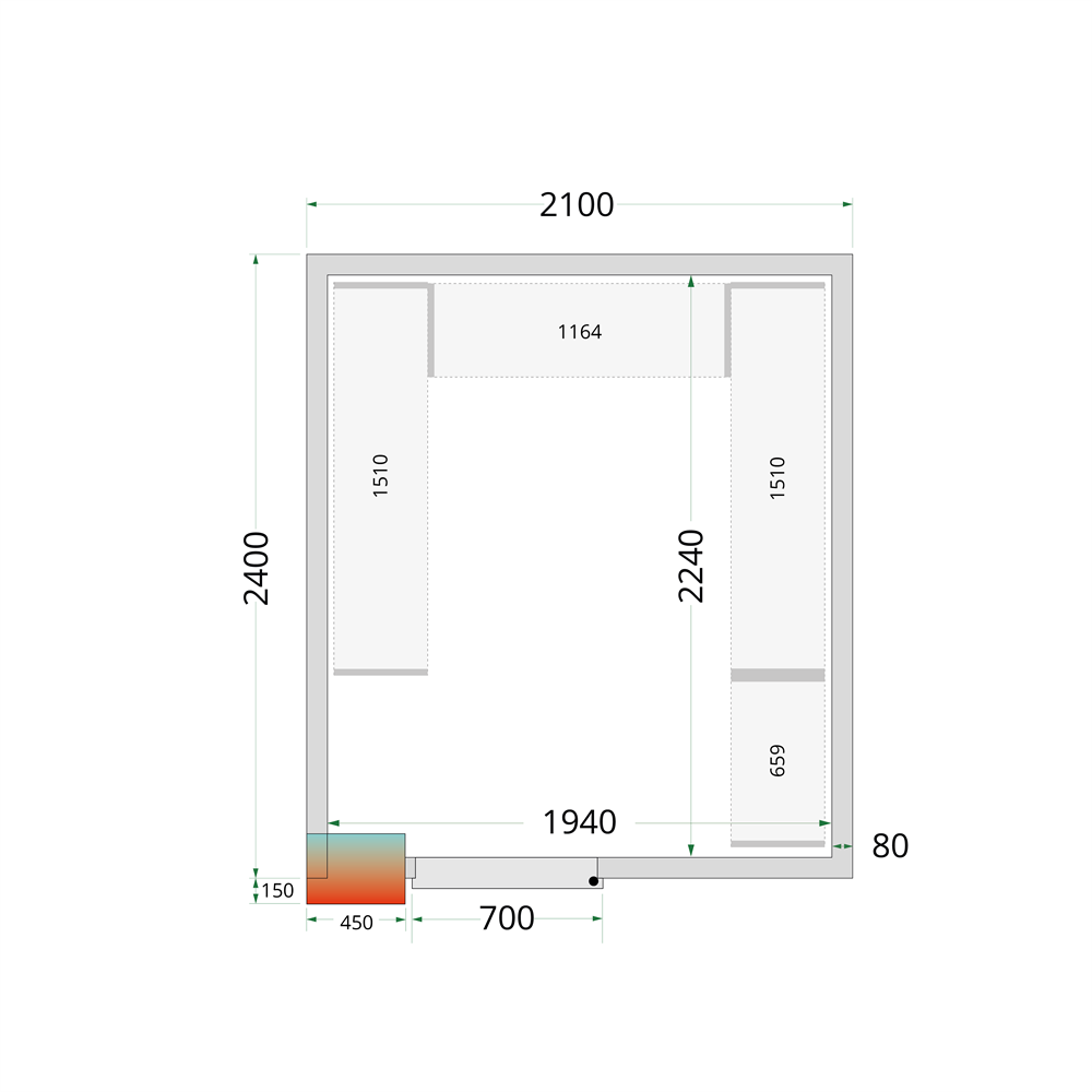 TFW-CR 210x240x220 Kylrumspaneler med 80 mm isolering