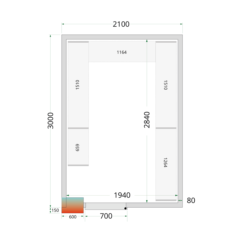 TFW-CR 210x300x220 Kylrumspaneler med 80 mm isolering