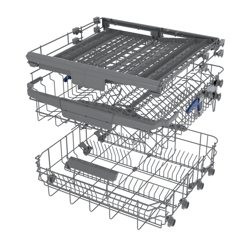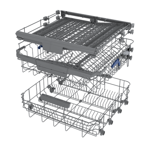 Besticksfacket kan dessutom skjutas ihop, så att det finns plats för höga glas i den mellersta korgen.